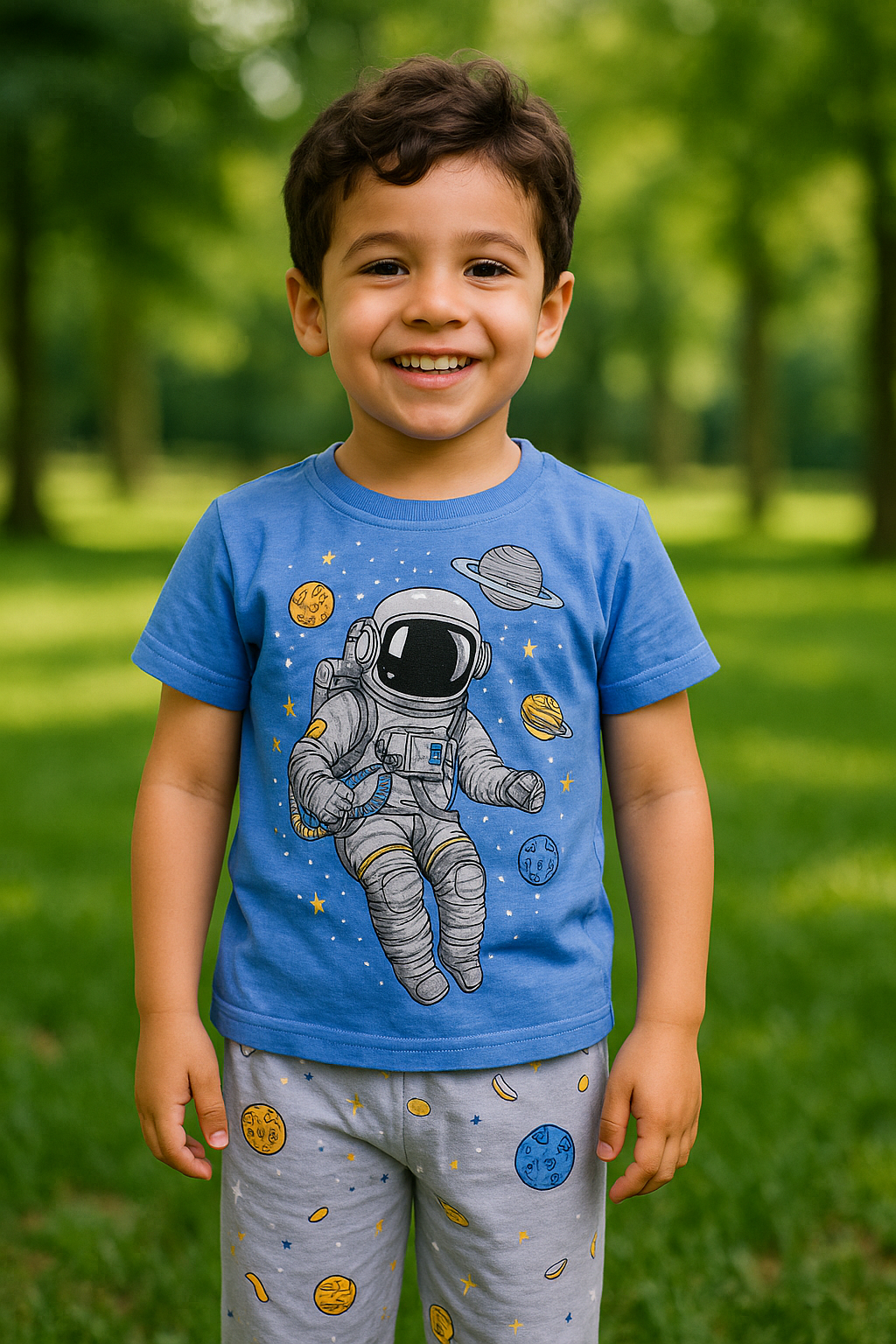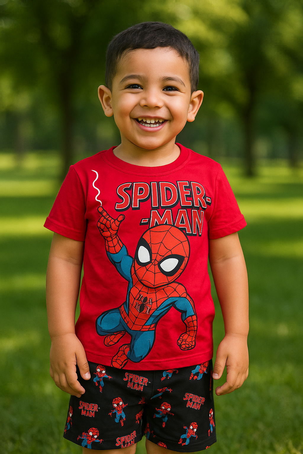 بيجامة أولادي بخامة قطن 100% ناعمة ومريحة على بشرة الأطفال، بتصميم سوبرهيرو جذاب يخلي كل طفل مبسوط وهو لابسها.